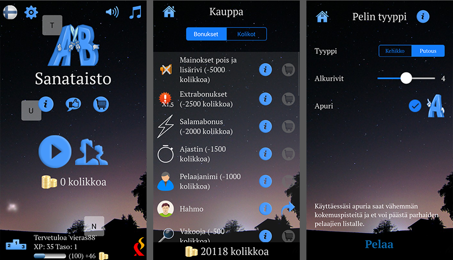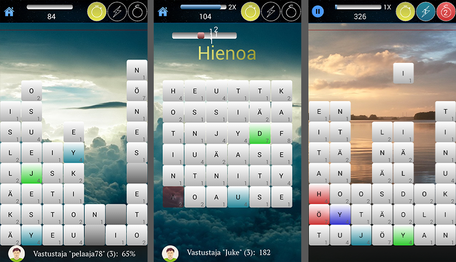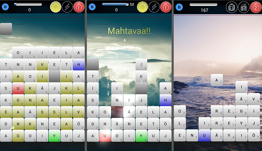 Hauskassa ja koukuttavassa sanapelissä etsit sanoja vierekkäisistä kirjainlaatoista, jotka ovat kehikossa tai putoilevat pelialustalle. Jos löydät useita sanoja peräjälkeen, saat lisäpisteitä. Pelilaudalle voi ilmestyä myös hyödyllisiä bonuslaattoja.